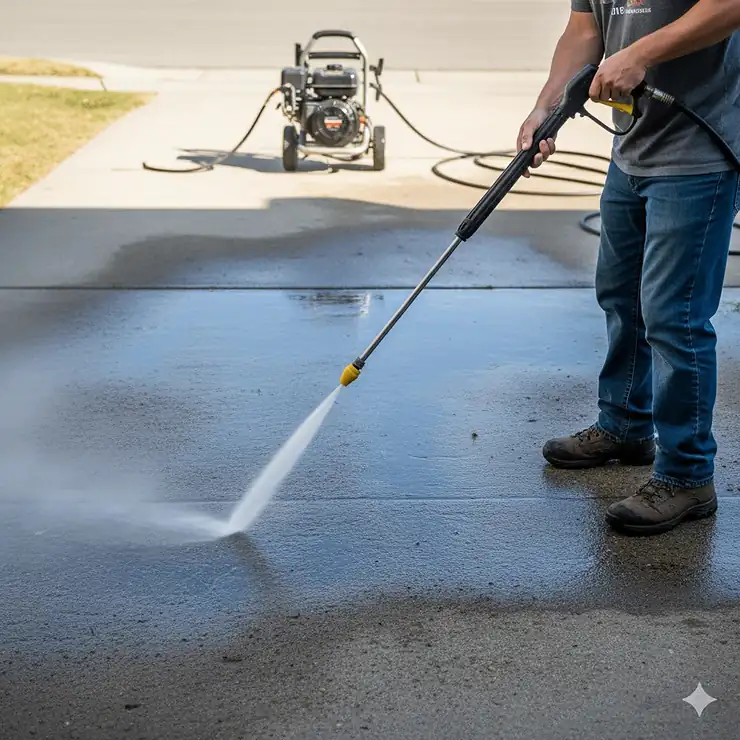 Heavy stains need pre-treatment with appropriate cleaners. Relying solely on pressure wastes time and water. Apply detergent, let it dwell, then pressure wash—this combination achieves better results with less effort.